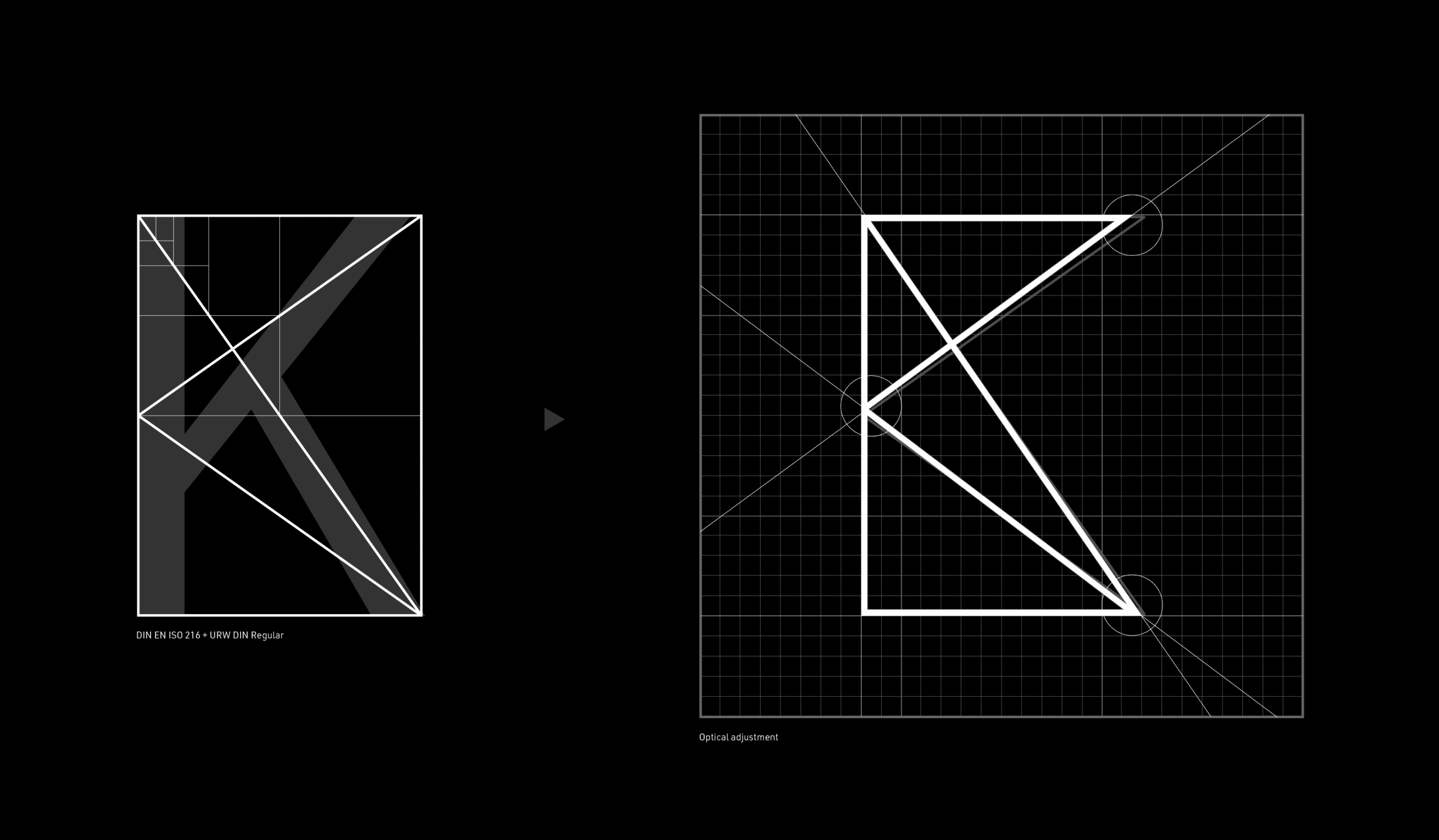 The logo was constructed from a geometric framework of intersecting lines and triangular divisions, echoing the structural relationships found in the building’s architecture. This framework became the foundation for the broader identity system.
