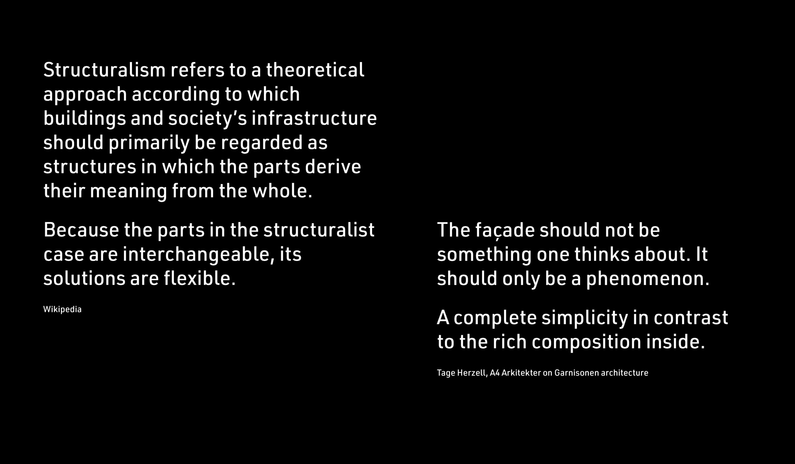 The identity system was derived directly from the structural logic of the Garnisonen complex.