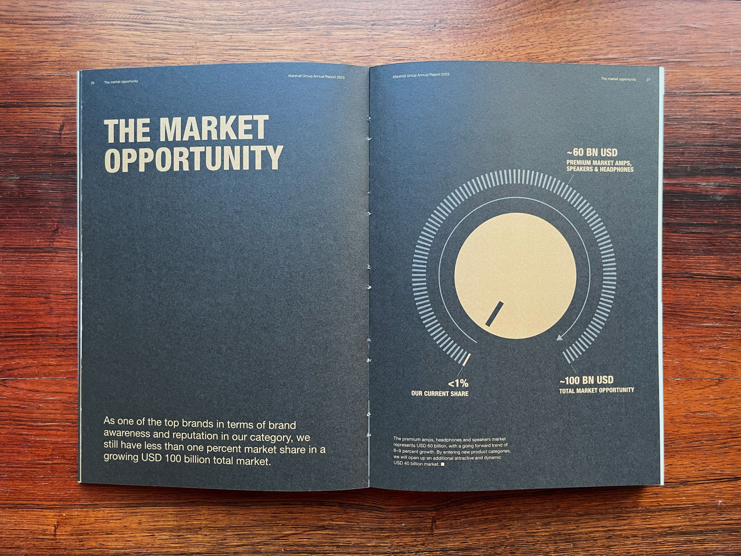 The report became a structural reflection of the brand. Rather than blending everything into one expression, it separates framework and content — mirroring how Marshall enables others to create.